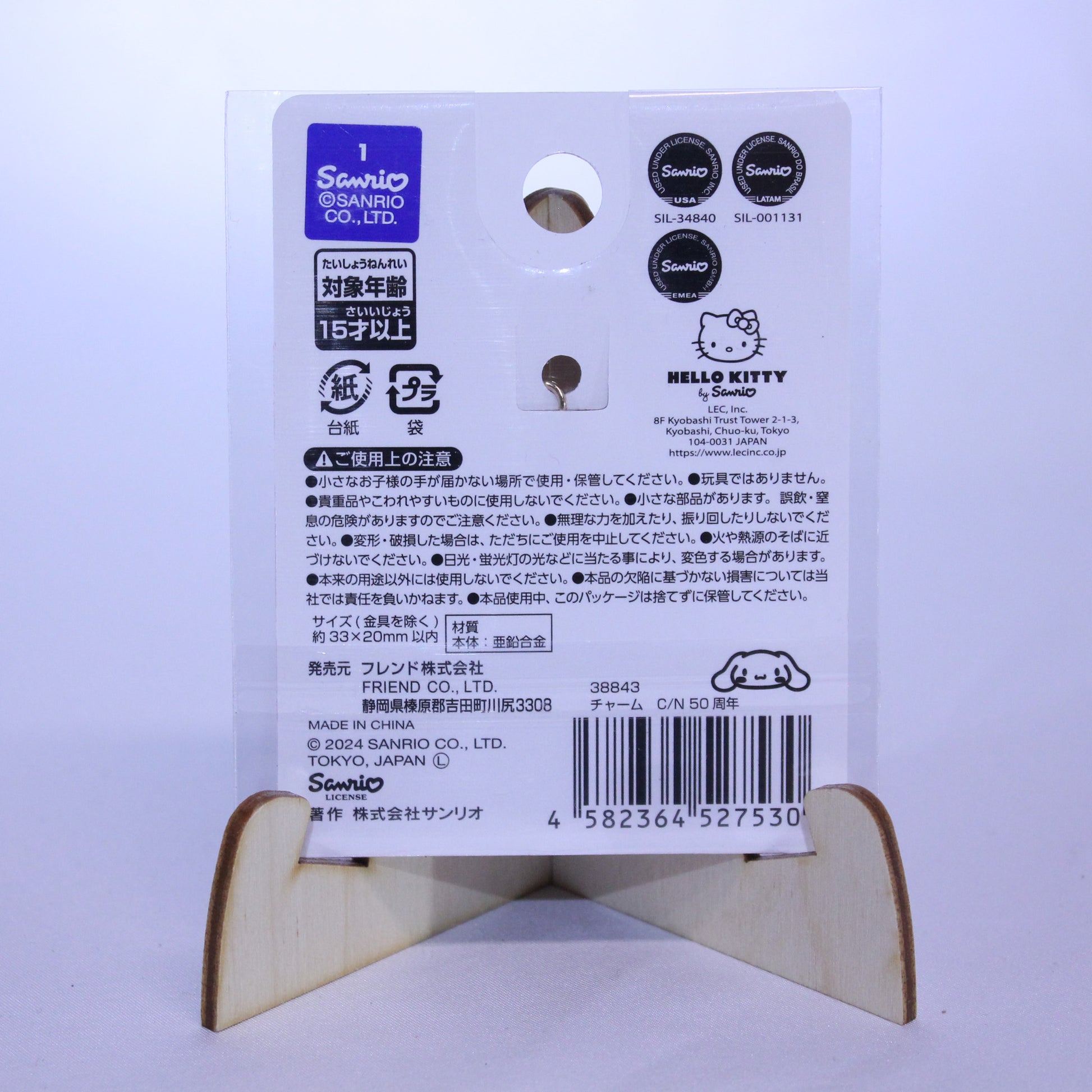 Hello Kitty's friend Cinnamoroll wearing a Hello Kitty hat, now in a cute charm form!